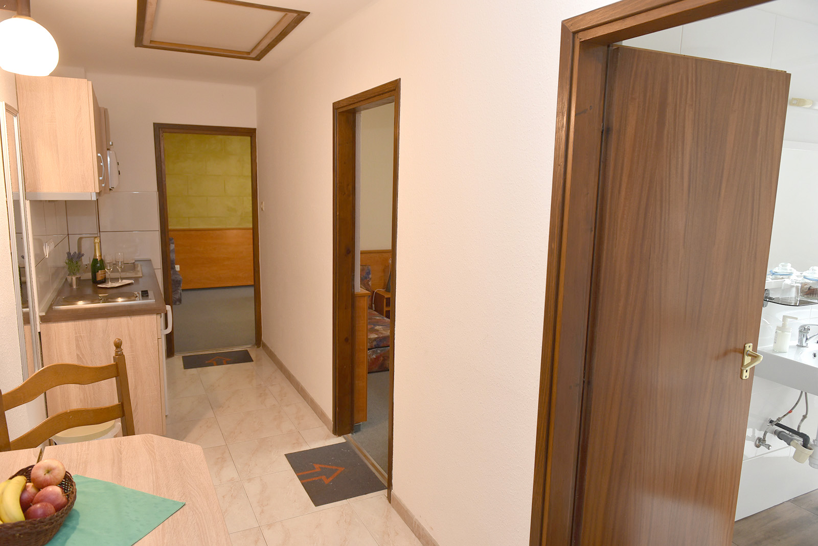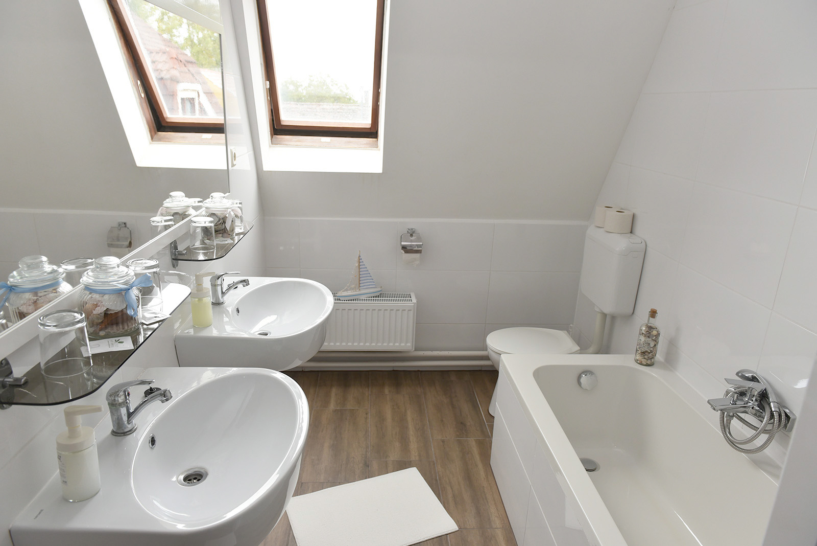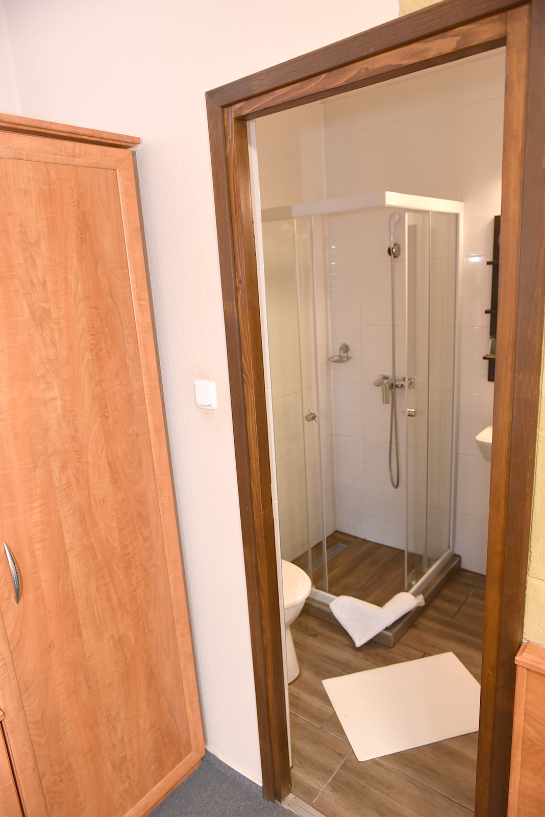 Kétszobás családi-apartmanunk tágas fürdője lehetővé teszi a család gyors reggeli elkészítését sorban állás nélkül, megőrizve a családias hangulatot.
