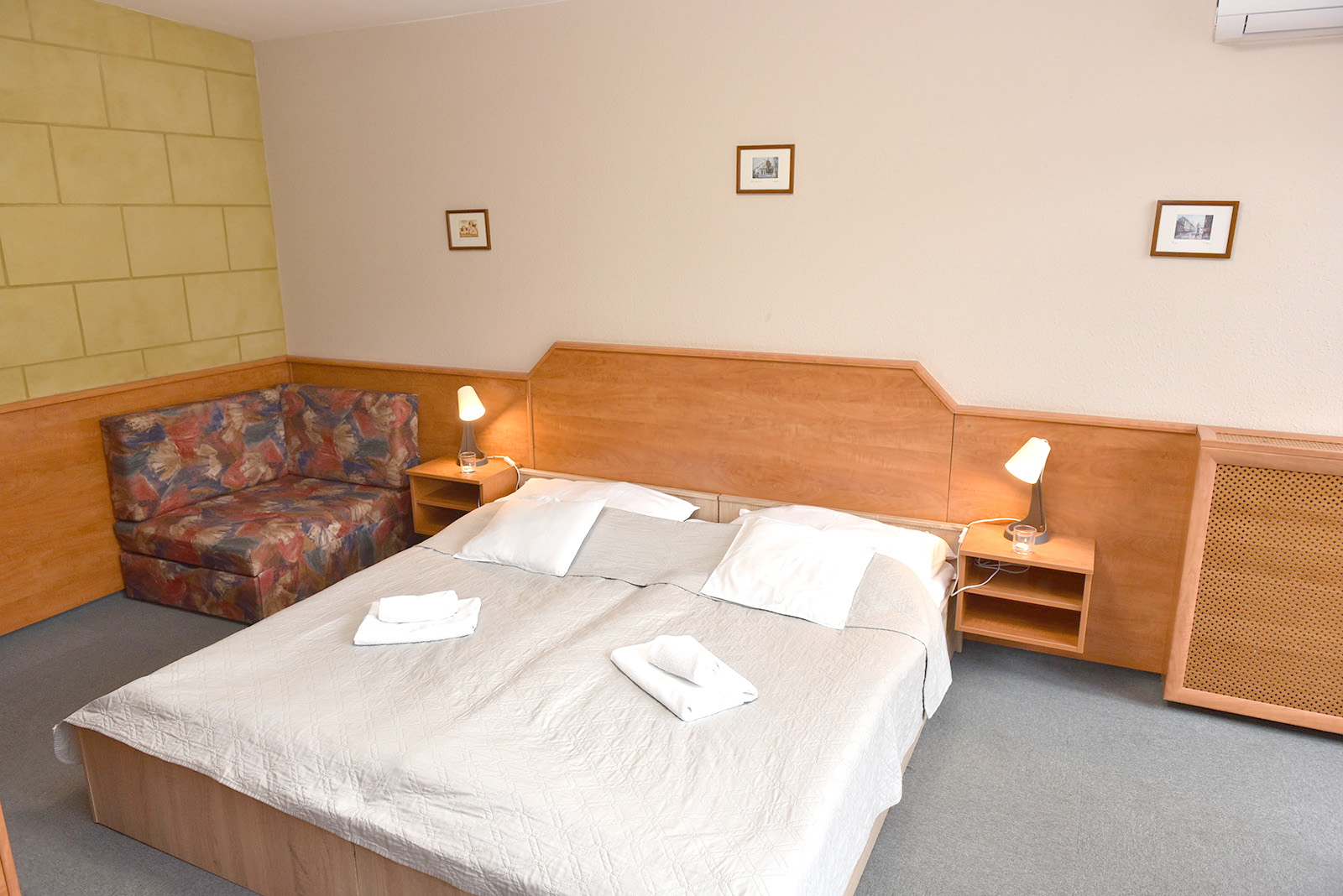 • Kétágyas szobák: standard vagy deluxe változatban, városi vagy udvari kilátással